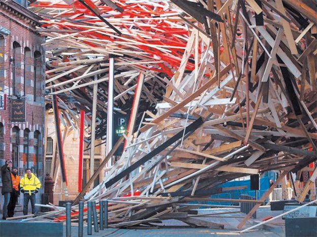 Una escultura levantada en la localidad belga de Mons, elegida Capital europea de la Cultura 2015, se derrumbó durante la Nochebuena, tras ser inaugurada hace 19 días.