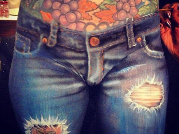 Dani buscó los jeans perfectos para la modelo y los pintó tan detalladamente que a simple vista es difícil notar la diferencia.