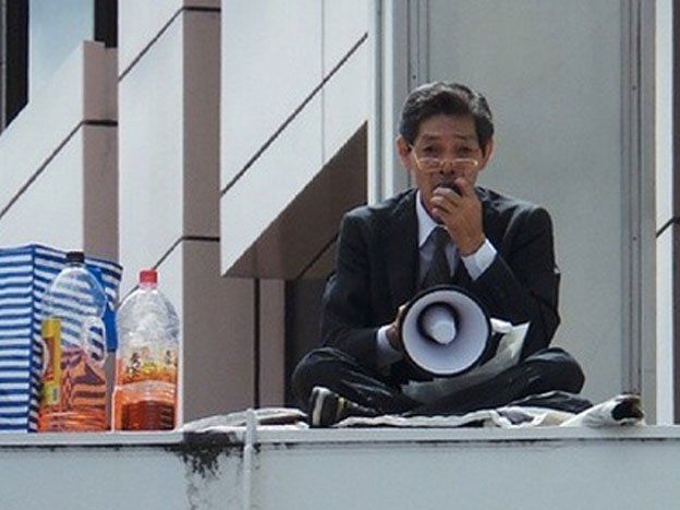De acuerdo con testigos, el hombre usó un megáfono para protestar por las decisiones del gobierno japonés para modificar la política de defensa del país. Luego se roció con gasolina y se prendió fuego mientras cientos de personas miraban desde abajo y de los edificios cercanos.