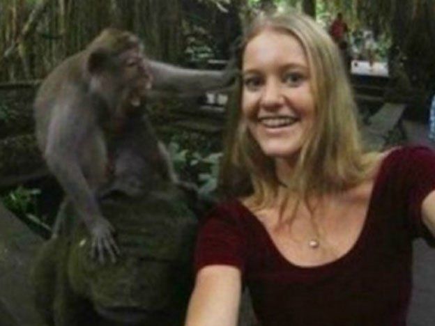 Todo estaba bien para la joven rubia que aparece en las imágenes (al menos la primera). La mujer comenzó a tomarse una selfie junto a un monito, pero todo se convirtió en una pesadilla en pocos segundos.