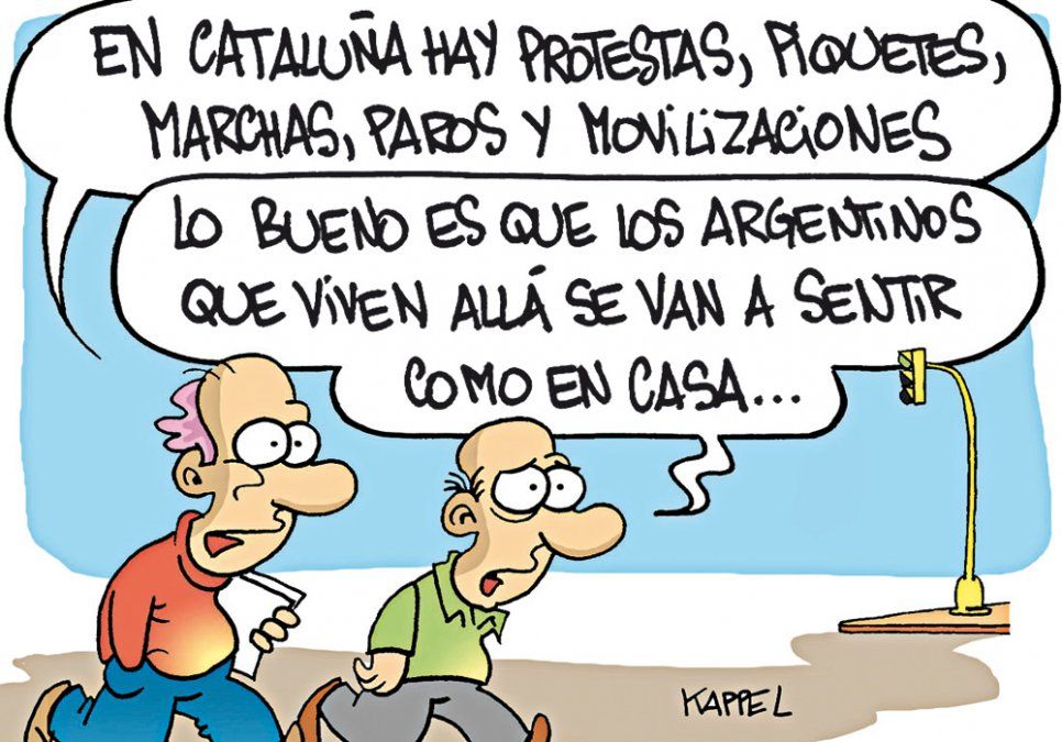 Inicio Mundo El humor de Kappel El humor de Kappel. 05 de octubre de 2017 - 10:24 Se sienten como en casa Por UNO Temas relacionados: El humor de Kappel Humor Cataluña las más leídas Estados Unidos Quién es el hombre que inició el tiroteo en la cena de periodistas a la que asistió Donald Trump Por Paula Alonso ¿La sabes? Cuál es la diferencia entre una bicisenda y una ciclovía Por Daniel Calivares Rincones de Mendoza Qué son las cajas ocultas del Pasaje San Martín y para qué se usaban Por Facundo García Mundo Diego, la tortuga que ayudó a salvar a su especie: pasó de 15 ejemplares a más de 800 crías Por Valentina Araya Lo que se lee ahora Mundo Piden juicio para los padres de un nene que mató a una turista desde el balcón de un tercer piso Te puede interesar Guerra en Medio Oriente Israel volvió a atacar al Líbano, pese al alto el fuego Golpe fatal Piden juicio para los padres de un nene que mató a una turista desde el balcón de un tercer piso Impresionante Desafío a la naturaleza: parten una montaña a la mitad para crear una autopista futurista