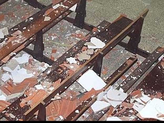 Después del susto inicial, testigos indican que las gruesas prendas de abrigo que por el frío llevaban los feligreses encima amortiguaron los golpes de los cascotes de considerable tamaño que cayeron del techo.