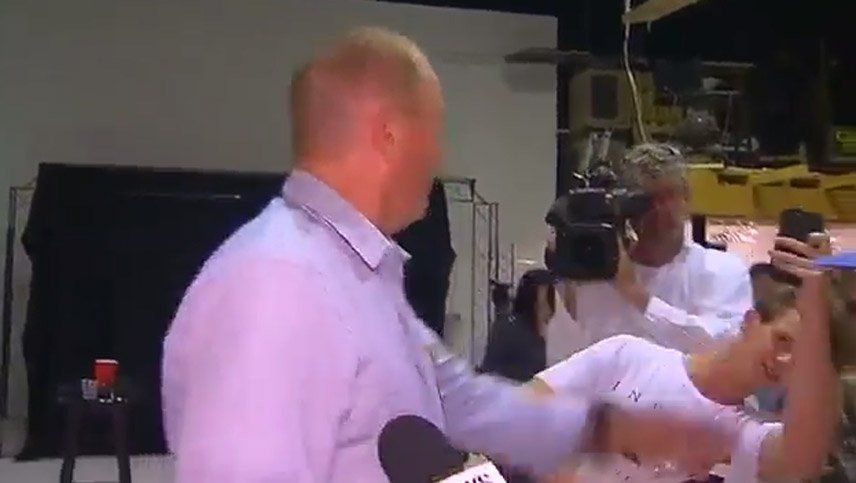 El senador australiano Fraser Anning respondió con un cachetazo la agresión de un joven y el video se hizo viral rápidamente.