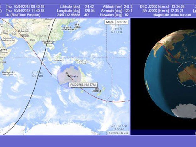 El carguero espacial no tripulado Progress, en caída libre hacia la Tierra desde que los operadores rusos perdieran su control hace una semana, se desintegrará entre la noche del jueves y la madrugada del viernes, anunció la agencia espacial rusa Roskosmos."El satélite abandonará su órbita entre 00:45 y las 06:36 hora de Moscú (21:45 GMT del 7 de mayo y las 03:26 GMT del 8 de mayo)", señaló Roskosmos en un comunicado publicado el jueves.