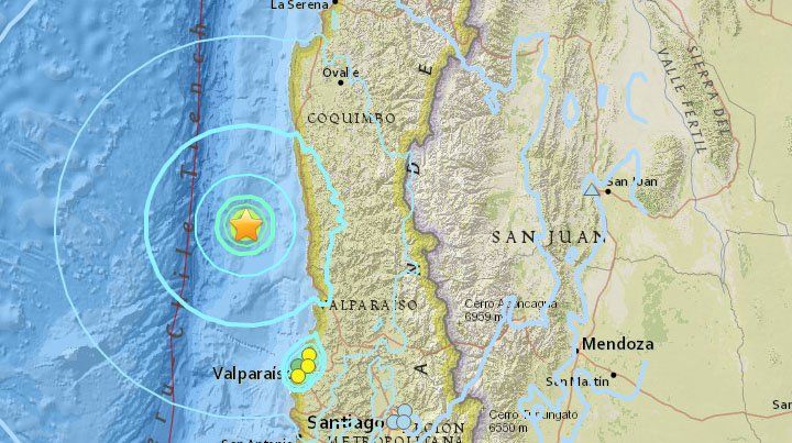 El epicentro se ubicó a 45 km al oeste de Los Vilos y afectó a las regiones de Coquimbo, Valparaíso, O'Higgins y Metropolitana.