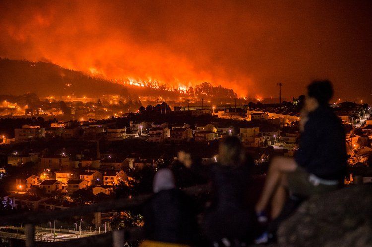 Los canales de televisión portugueses difundían sin parar imágenes de llamas arrasando árboles y casas ante la mirada de sus habitantes aterrados, que intentaban en vano frenar el avance del fuego o abandonaban sus calles.