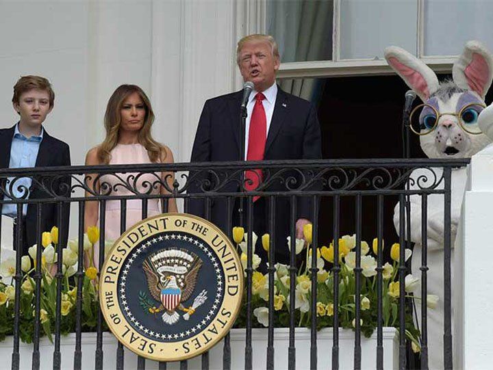 El presidente de Estados Unidos Donald Trump le dio la bienvenida el lunes a una gran cantidad de familias con sus niños para el tradicional Festival de los Huevos de Pascua en los jardines de la Casa Blanca, y en el solemne momento de su himno nacional, olvidó los honores.