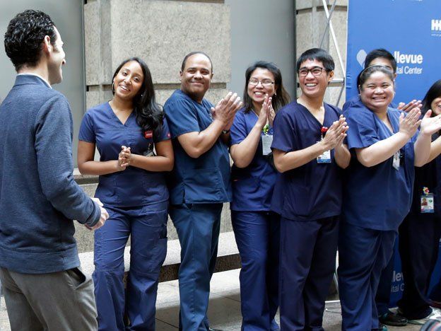 El doctor Craig Spencer fue dado de alta del hospital Bellevue el 11 de noviembre al declararse que estaba libre de ébola. El gobierno de la ciudad supervisó por precaución la salud de los trabajadores de emergencias médicas y de laboratorios que intervinieron en su tratamiento. El médico ingresó al hospital el 23 de octubre.