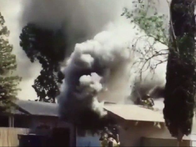 Un bombero trataba de apagar un incendio en Fresno, California, cuando el techo por el que caminaba se desplomó y terminó dentro del lugar.El video muestra el momento exacto de la caída y, después, una gigantesca llamarada que dejó al hombre con el 75% del cuerpo quemado.