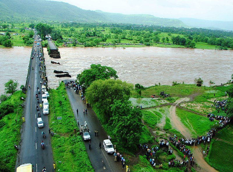 La imágenes de la televisión muestran varias partes hundidas de este puente sobre el río Savitri, situado a unos 170 kilómetros al sur de Bombay, cerca de una autopista que une esta ciudad con la región turística de Goa.
