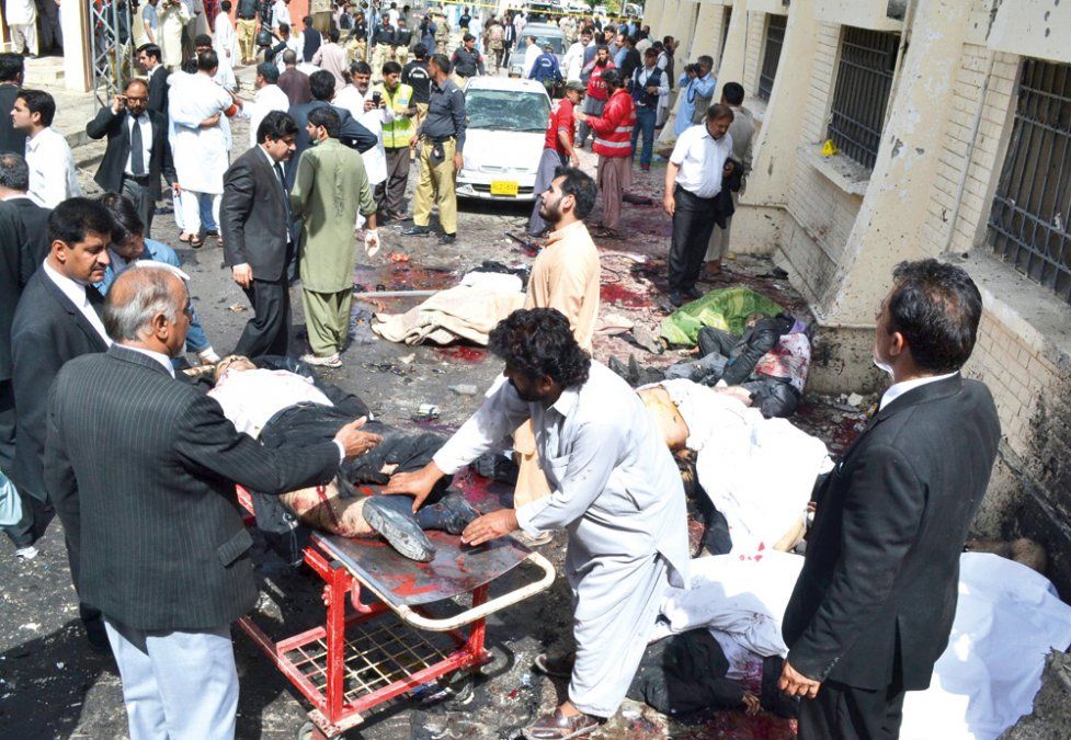 Muchos abogados y periodistas habían acudido al hospital después del asesinato del presidente del colegio de abogados de Baluchistán, Bilal Anwar Kasi, abatido por dos individuos armados cuando salía de su domicilio.
