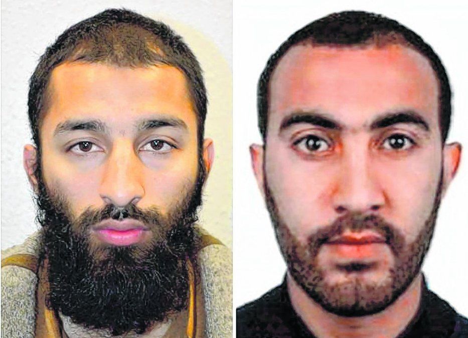Los identificados son Khuram Shazad Butt, de 27 años, británico nacido en Pakistán y ya conocido de las autoridades, según admitió la policía londinense. El segundo terrorista es Rachid Redouane quien ostentaba las nacionalidades marroquí y libia. De desconoce su edad, ya que dio dos fechas diferentes de nacimiento. Se calcula que tenía de 25 a 30 años. También usaba el nombre de Elkhdar y era un desconocido para las autoridades. El tercer atacante no ha sido identificado. Khuram Butt, conocido también como Abz, había sido denunciado dos veces: por un ama de casa de su barrio, que lo acusó de intentar lavar el cerebro a su hijo con sus ideas islámicas radicales (salafistas), y por un conocido que llamó a la "línea caliente" antiterrorista, escandalizado por sus palabras islamistas y proterroristas y su consumo en YouTube de vídeos de predicadores radicales. Además había sido expulsado de una mezquita de Londres hace dos años.