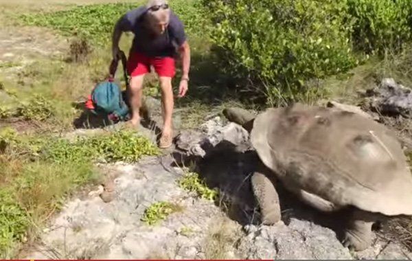 Un presentador del National Geographic nunca pensó que iba a ser perseguido por una tortuga a la interrumpió mientras mantenía sexo y que se molestó por la presencia del desconocido.