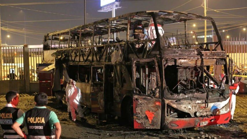 Al menos 20 personas fallecidas y una decena de heridos es el resultado de un incendio de un colectivo en la localidad de Fiori, perteneciente al distrito de San Martín de Porres, Perú.