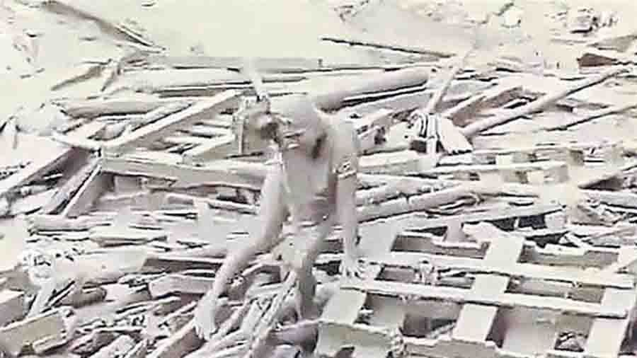 Los escombros de mueven, parece una película. Entre ellos aparece una figura de barro. Parece la de una mujer. Lo es. Intenta salir, escapar de su encierro. Parece lograrlo, pero se resbala. Busca pararse, no lo consigue. Vuelve a intentarlo. Camina despacio. Se sostiene la cabeza como si tuviera miedo de perderla, se arrastra y se cae. Lo intenta de nuevo, camina, se desploma en la orilla y se salva. Se convierte en ícono.