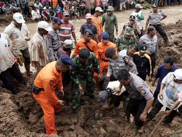 Unos 200 trabajadores de rescate y 500 voluntarios se encontraban hoy en el lugar de la tragedia auxiliando a víctimas e intentando rescatar sobrevivientes sepultados por el lodo, en tanto la falta de equipos y herramientas complica las operaciones, por lo que los auxilios utilizan sus manos para escarbar en el barro.