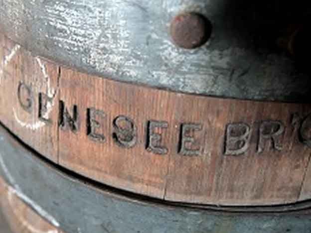 El árbol de barriles está alumbrado con 182 metros de luces verdes y coronado con un letrero giratorio de Genesee. Más de 20 empleados de la compañía trabajaron en el diseño y el armado del árbol.