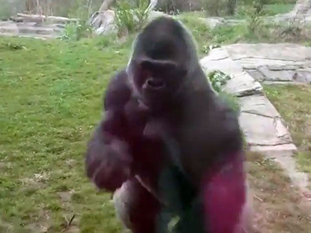 Un vídeo muy corto colgado en YouTube y sin apenas explicaciones muestra como un gorila macho adulto corre de repente hacia un ventanal en la zona en la que los visitantes están observando y carga contra ella.El animal golpea el cristal con tal fuerza que este se resquebraja, haciendo que los visitantes salgan huyendo. El vídeo se titula When a Silverback attacks (Cuando un gorila macho adulto ataca) y en el pie solo especifica: "En el zoo, donde ocurrió esto".