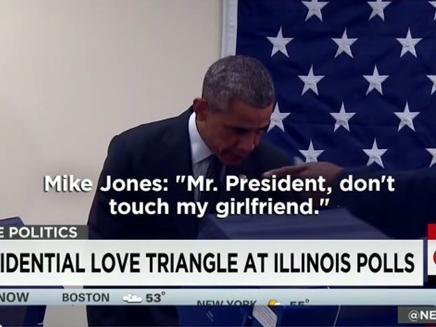El presidente de los Estados Unidos, Barack Obama, terminó enredado en un intríngulis el lunes pasado cuando fue a votar a la ciudad de Chicago, estado de Illinois, donde se pasó de caballero con una mujer que sufragaba a su lado y fue llamado al orden nada menos que por el novio de la dama.