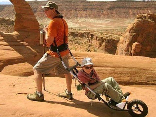 James Geier, un jubilado estadounidense de 60 años, ha conmovido al mundo al compartir una fotografía en la que se le puede ver disfrutando del Parque Nacional Arches -ubicado en Utah-. Sin embargo, el espectacular paisaje no ha sido lo que ha generado la admiración de los internautas, sino el saber que este norteamericano ha recorrido cientos de kilómetros con Logan -su hijo minusválido- a cuestas para que éste puede disfrutar con él de los mejores monumentos del país.