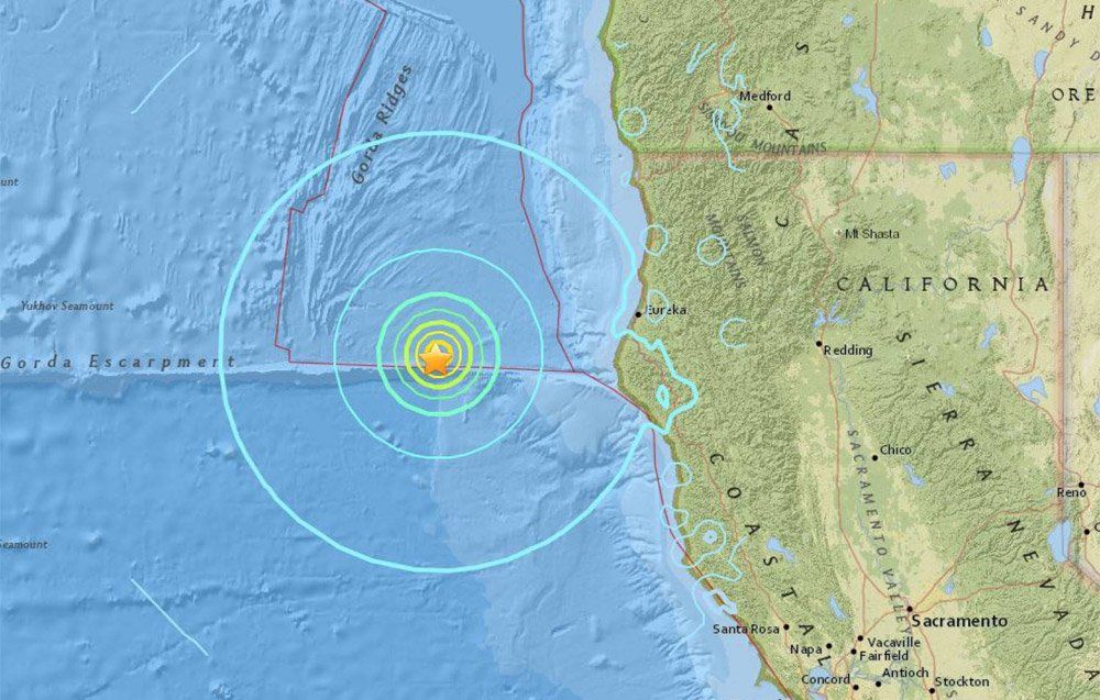 El temblor ocurrió a las 14.49 GMT, su hipocentro se localizó a 12,1 kilómetros de profundidad y su epicentro en el mar, a 160 kilómetros al oeste de la localidad costera de Ferndale, de algo más de 1.300 habitantes, añadió el USGS sin aportar más detalles.