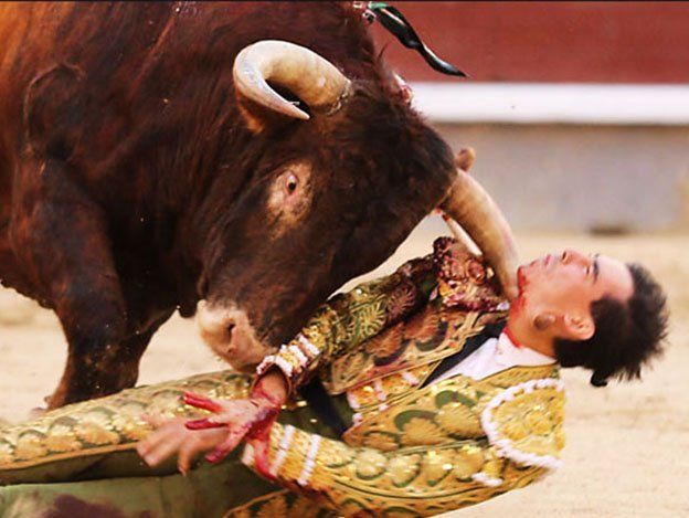 El matador de toros español Saúl Jiménez Fortes sufrió uno de los peores percances en la historia del toreo, con dos heridas graves en el cuello provocadas por un toro de 640 kilogramos de la ganadería de Salvador Domecq, durante el séptimo festejo de la Feria de San Isidro 2015, en la plaza de Las Ventas de Madrid.El oriundo de Málaga fue a buscar un triunfo a como diera lugar y fue paseado de un cuerno al otro, entre los gritos desesperados de los aficionados. Y en el suelo, el toro no falló. El cuerno izquierdo entró por el lado derecho del cuello del torero y salió por el otro costado.
