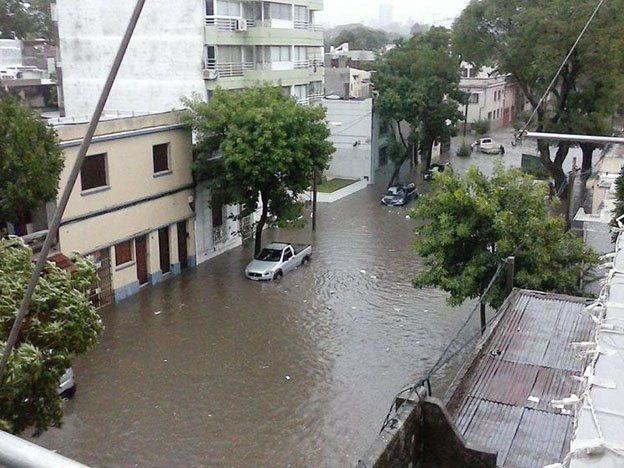 Entre las 15.21 y las 15.54 cayeron 59 milímetros en una amplia zona de la capital uruguaya y las autoridades aseguraron que recibieron 100 denuncias en una hora por distintas situaciones de emergencia y que la intensidad del temporal "se registra en promedio una vez cada 50 años", según informó el diario El Observador.