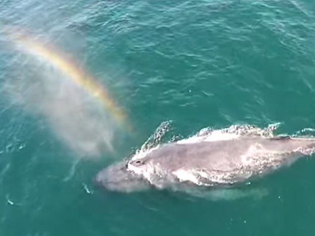 (CNN en Español) - Una ballena jorobada es la nueva estrella de las redes sociales debido a un video que capta el momento en el que un arco iris sale de su espiráculo cuando el animal expulsa aire y agua por ese orificio al salir a la superficie.El video de la ráfaga de colores producida por la ballena fue grabado por Jason Anderson con un dron en las aguas de New Port (condado de Orange, en California, EE.UU.), en el barco de Royce Hutain, según se publica en el sitio web.