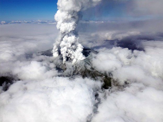 La erupción del Monte Ontake, de 3.067 metros de altura, tuvo lugar al mediodía. Los canales de televisión mostraron imágenes de enormes nubes de humo que ascendían del volcán.