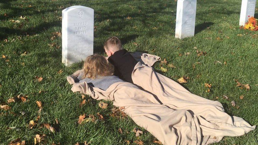 Los niños decidieron echar una siesta sobre la sepultura de su padre "para sentirse más cerca de él", explicó la viuda del sargento a ABC News. Se tumbaron sobre una manta y le contaron a su padre las novedades, como si estuviese vivo.