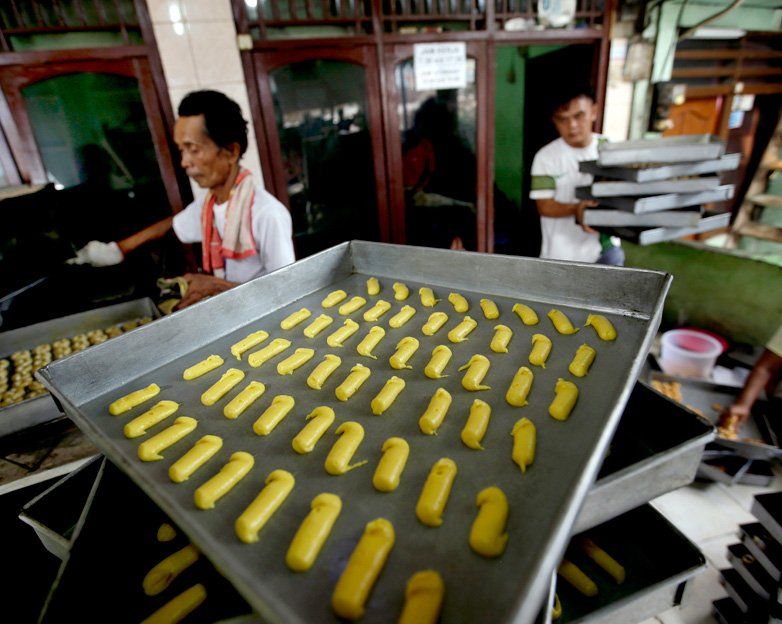 La foto del día.Delicias. Los trabajadores hacen las galletas y aperitivos en los preparativos para celebrar la festividad de Eid al Fitr en una panadería familiar en Yakarta, Indonesia.