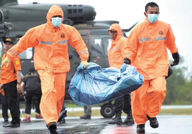 ►Piezas encontradas. Cinco partes grandes del aparato fueron encontradas en la zona de tareas en el mar de Java, frente a las costas de la isla de Borneo. ►Dificultades. Las búsquedas, en las que participan Estados Unidos, Rusia y Francia, se están viendo seriamente dificultadas por las condiciones meteorológicas.