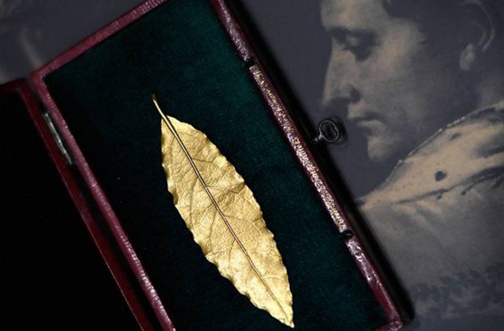 Una hoja de laurel en oro, que estaba destinada a la corona llevada por Napoleón en su coronación de 1804 fue rematada en 625.000 euros, comisiones incluidas, durante una subasta realizada en Fontainebleau, cerca de París.