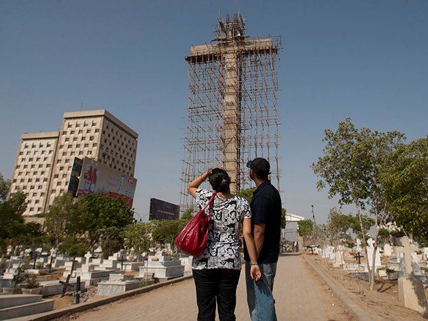 La cruz, que se completaría en los próximos meses, se levanta a la entrada de un cementerio cristiano en el centro de Karachi. El cementerio se abrió en la época de control británico en la zona, tiene casi 200 años y sus administradores cuidarán de la cruz cuando esté construida.