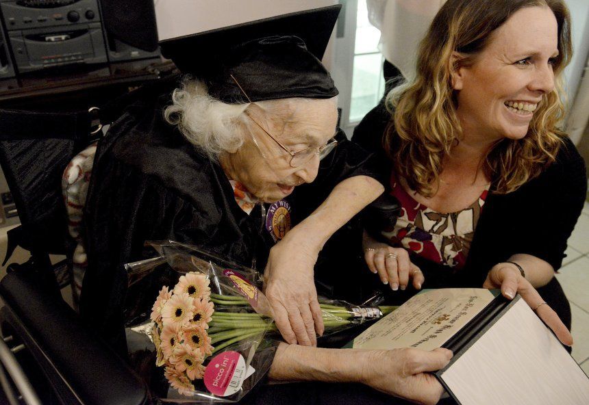 Una mujer de 105 años recibió un diploma honorífico de secundaria