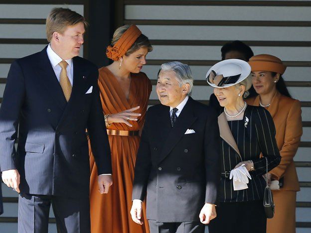 Antes el miércoles, Masako asistió a una ceremonia de recibimiento al rey en la que los emperadores Akihito y Michiko ejercieron de anfitriones. Masako fue vista saludando a la reina Máxima, con las dos mujeres vistiendo de naranja, el color oficial de Holanda.