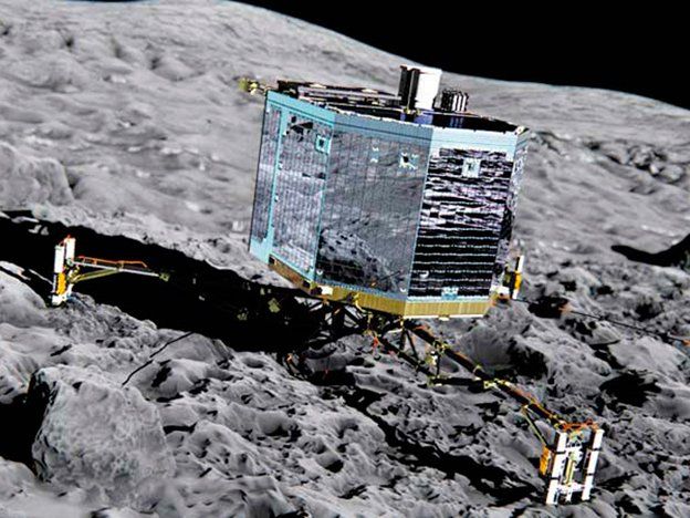 La sonda espacial europea Philae ha recopilado datos que apoyan la teoría de que los cometas pueden servir como laboratorios cósmicos en los que se ensamblan algunos de los elementos esenciales para la vida, dicen los científicos.Philae, que forma parte de la misión Rosetta de la Agencia Espacial Europea, utiliza dos instrumentos distintos para "oler" moléculas desde que hizo un aterrizaje accidentado en el cometa 67P/Churyumov-Gerasimenko en noviembre pasado.