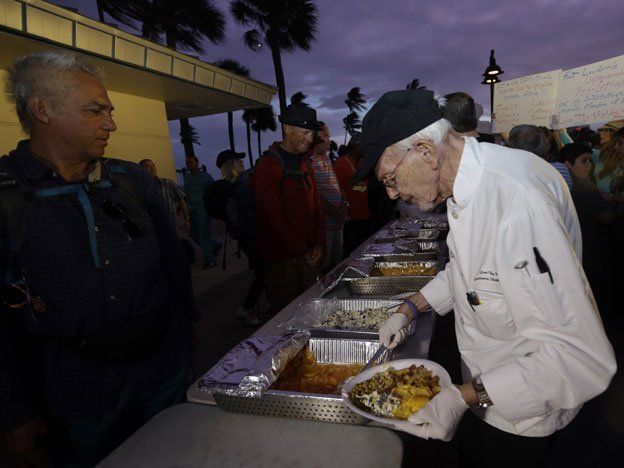 Pese a estar acusado de violar una ley que prohíbe alimentar a desamparados en Florida, el activista Arnold Abbott no se amedrenta e incluso regresó a un parque público a repartir comida para indigentes.