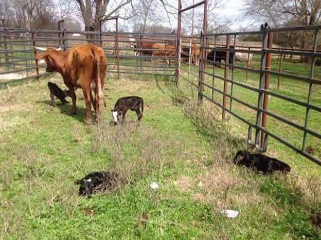 "Sabíamos que estaba preñada, pero no sabíamos que iba a hacer esto", dijo Barling, de 76 años. "Fue una sorpresa. Nos dejó atónitos".La esposa de Barling, Dora Rumsey-Barling, es dueña de las alrededor de 20 cabezas de ganado de la pareja a las afueras de DeKalb, cerca de las fronteras con Arkansas y Oklahoma. La nieta de Rumsey-Barling bautizó a los cuatro becerros negros, de acuerdo a Barling.