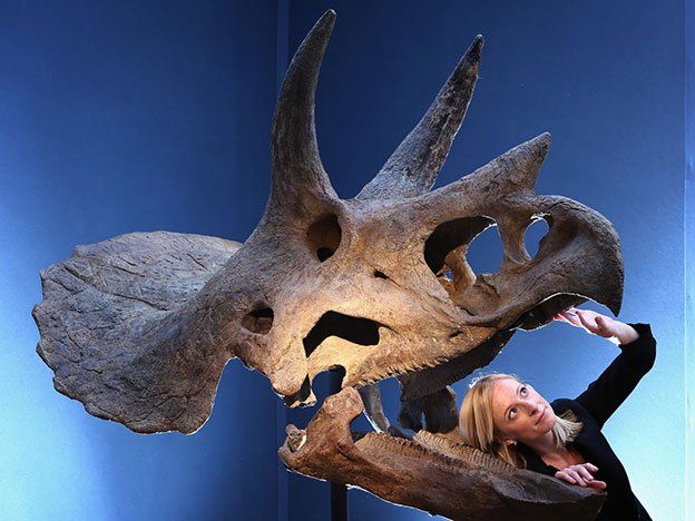 Desde entonces, ese fósil, un cráneo de triceratops macho de 65 millones de años de edad que fue encontrado en Glendive, Montana, ha cambiado de dueño en varias oportunidades y actualmente está a la venta en Hong Kong a un precio base de 1,8 millones de dólares.Excavar fragmentos de dinosaurios en Montana es un gran negocio; los aficionados locales rutinariamente buscan huesos y las expediciones de dinosaurios son una atracción turística importante.Los fósiles poco comunes son valorados por coleccionistas privados y museos, y los mejores especímenes pueden producir grandes cantidades de dinero. "Sue", el fósil más grande de tiranosaurio que se ha encontrado, se vendió por un récord de 8,5 millones de dólares en 1997 y está en exhibición en el Field Museum de Chicago.El cráneo del triceratops, apodado "Rey dragón", es único por su tamaño, dijo Linster. El cráneo fosilizado tiene un 95% de hueso; mide más de 2,7 metros de largo, 1,5 metros de alto y 1,4 metros de ancho.Fuente: CNN.