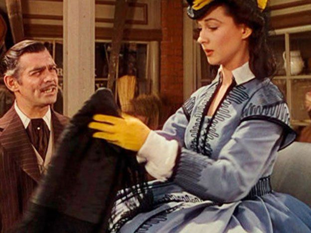 El vestido -una falda con un saco- fue utilizado en escenas clave del filme de 1939, incluyendo el encuentro de "Scarlett O'Hara" con "Butler" y cuando es atacada en el pueblo.