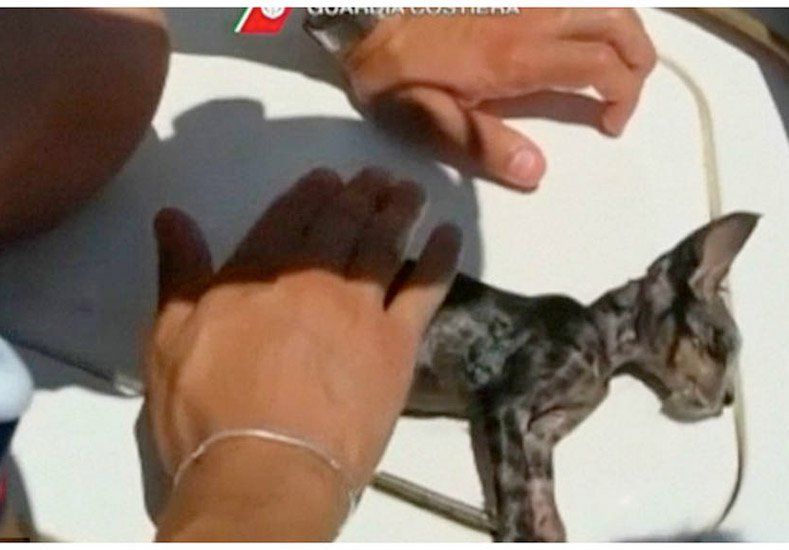 Luego de que varios niños alertara a un bote de la guardia costera italiana sobre un gatito que flotaba inerte en el mar, uno de los tripulantes se lanzó al oceáno para intentar rescatar al pequeño felino. El mom