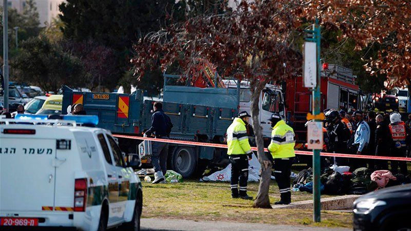 Un camión atropelló a un grupo de soldados israelíes que descendían de un autobús el domingo en Jerusalén.