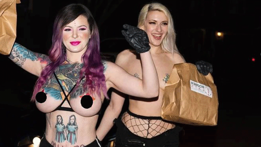 Con los table-dance clausurados temporalmente por la orden de distanciamiento social en Estados Unidos, las bailarinas ahora se dedican a repartir comida en topless para atender los pedidos de sus habituales clientes en el centro de espectáculos llamado Brodie Grody.