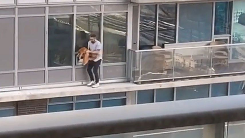 Un hombre arriesgó su vida al caminar por la cornisa de un edificio altísimo para salvar a su gato. La arriesgada maniobra sucedió en Canadá, cuando un hombre fue en busca de su mascota que se había ido a otro departamento, a unos 10 metros de donde vive.