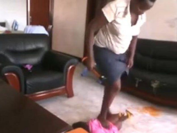 Las imágenes muestran cómo la niñera Jolly Tumuhirwe, de 22 años, le pega sin parar a la pequeña después de que esta se negara a comer.