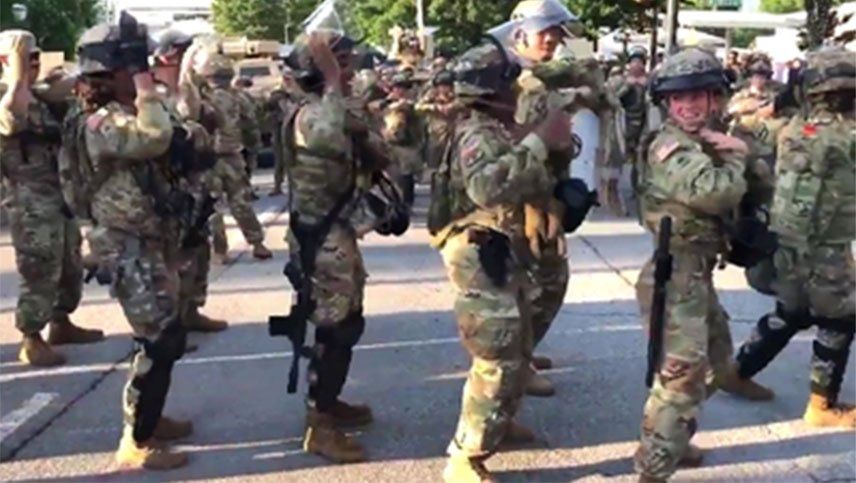 Soldados de la Guardia Nacional de Estados Unidos sorprendieron a los manifestantes con la coreografía de la canción Macarena en plena protesta por la muerte de George Floyd a manos de un policía.