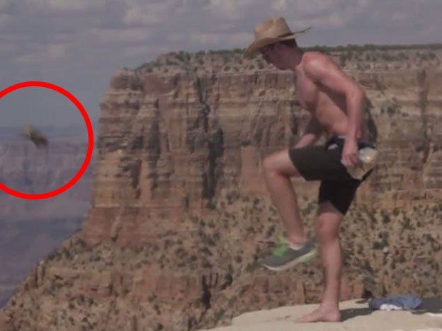 En un momento uno de ellos empieza a regar comida en el suelo para atraer a una ardilla que caminaba cerca. Cuando el animal se acerca al precipio el individuo de la una patada y este vuela en caída libre.