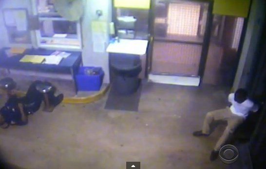 Mientras el oficial Franklin Foulks detenía a Jamal Rutledge, de 17 años, Foulks repentinamente sufrió un ataque y cayó al suelo. Por lo tanto, el detenido, que estaba sentado en una silla y esposado, empezó a patear la valla de seguridad para dar aviso al resto de policías.
