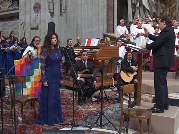 Los músicos argentinos Patricia Sosa, Facundo Ramírez, el charanguista Rodolfo Ruíz; el vientista Tukuta Gordillo y Claudio Sosa participaron junto al coro romano Música Nuova de la presentación de La Misa Criolla en la Basílica de de San Pedro en el Vaticano, ante el Papa Francisco por la celebración solemne por el Día de la Virgen de Guadalupe, patrona de América Latina.